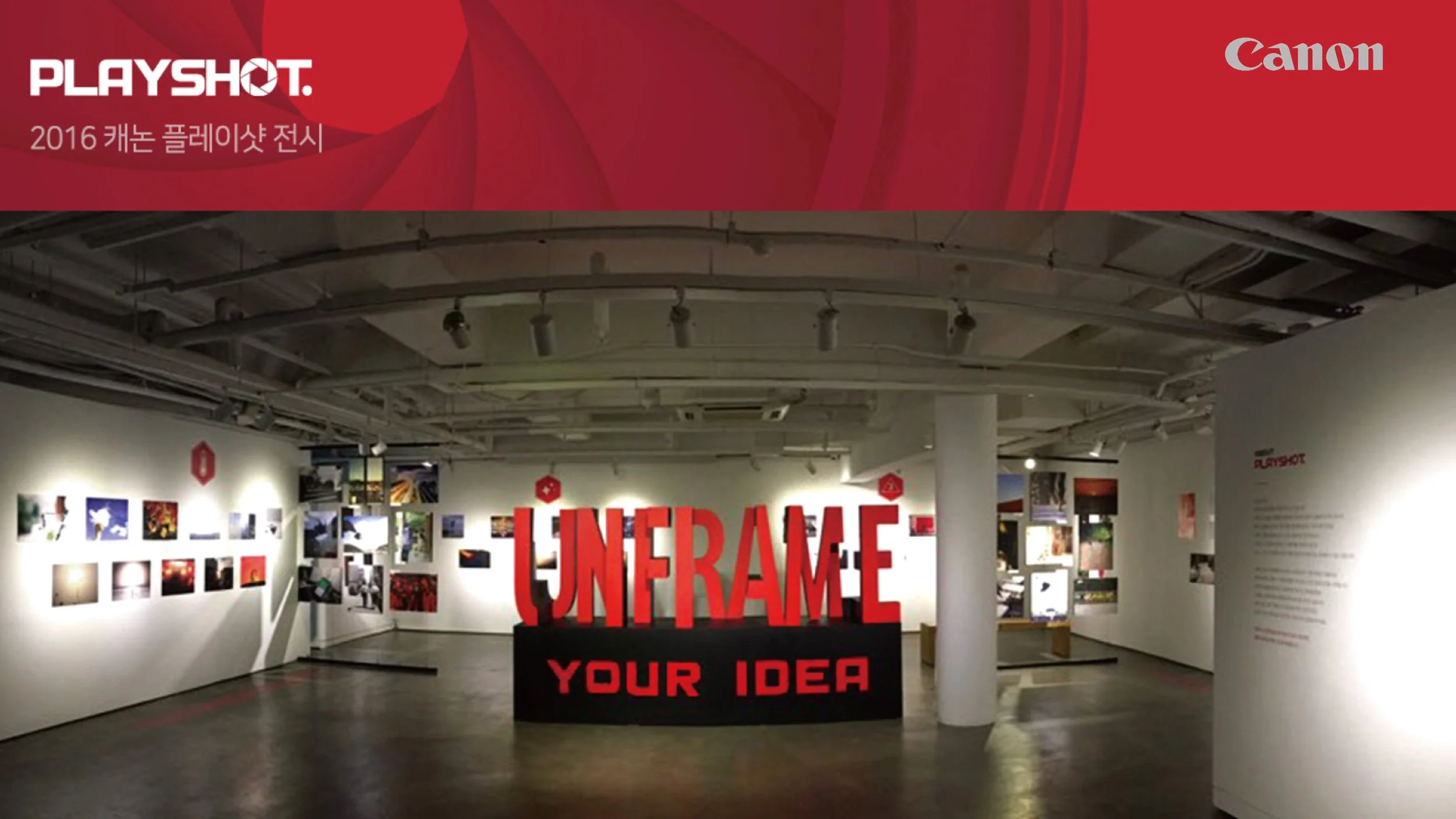 Canon Apgujeong branch annually exhibits Canon Playshot that shows fresh and flexible thinking. Boxer Inc. handled two exhibition design and installation for Canon in 2016 and 2017, it exhibited under the theme ‘Unframe’ in 2017. Directors Company Inc. was in charge of planning, and had a periodic idea meeting with Boxer Inc. on exhibit contents.