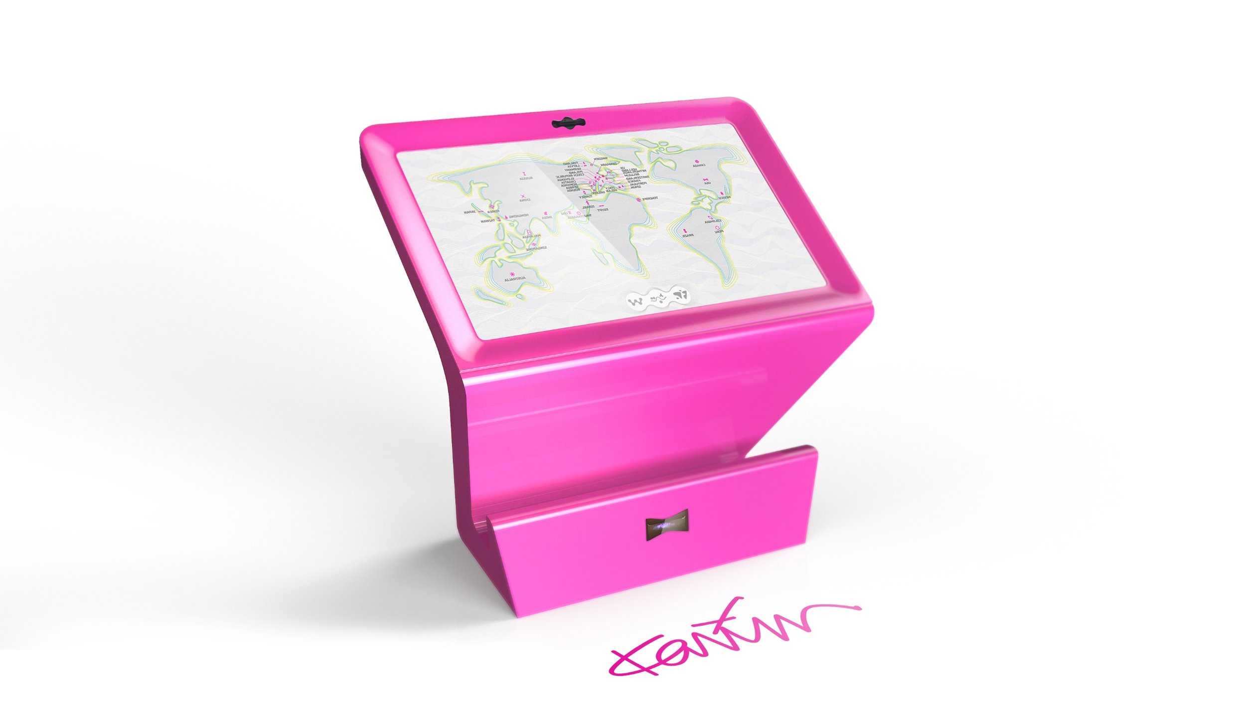 This is an information kiosk project that showcases the design goods from the Karim Rashid exhibition. It is a redesigned project based on the Z stool, which was originally designed by Karim Rashid, a world-famous industrial designer who is currently working in the field. The shape and structure were designed by Boxer Inc., while the UX/UI was designed by Nemo UX Inc.