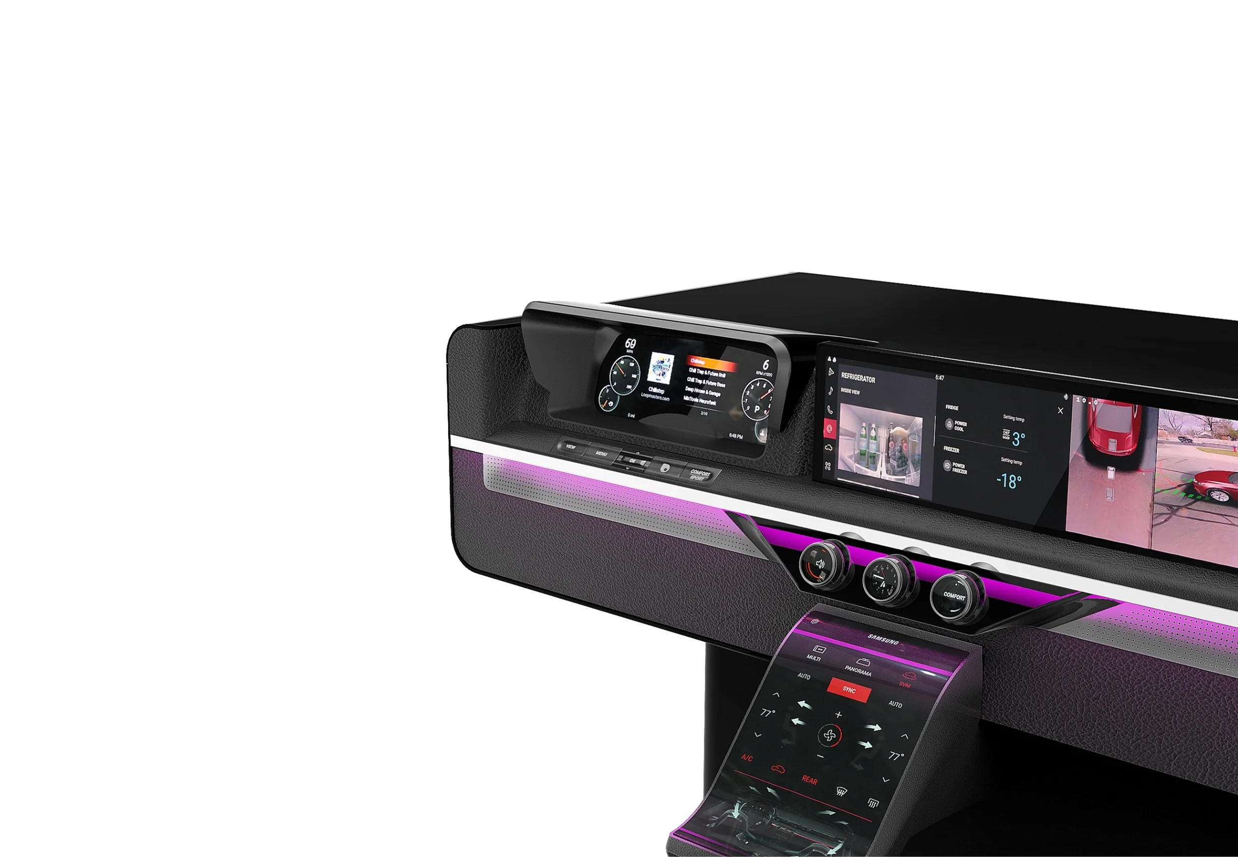 Samsung Electronics exhibited ‘Digital Cockpit’ with Harman’s vehicle technologies. Samsung’s ‘Bixby’ and ‘SmartThings’ technologies are applied inside the digital cockpit, so you can easily control the air conditioner, audio volume and lighting in your car with voice only.